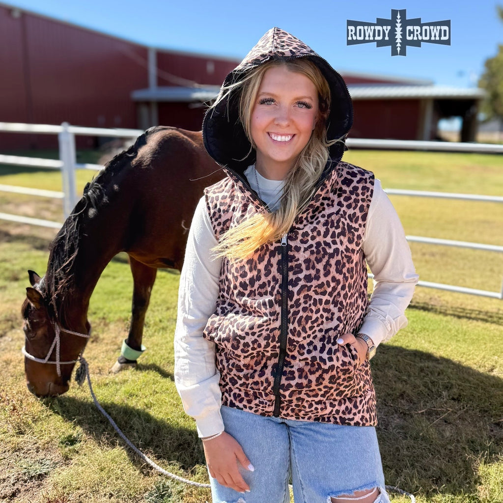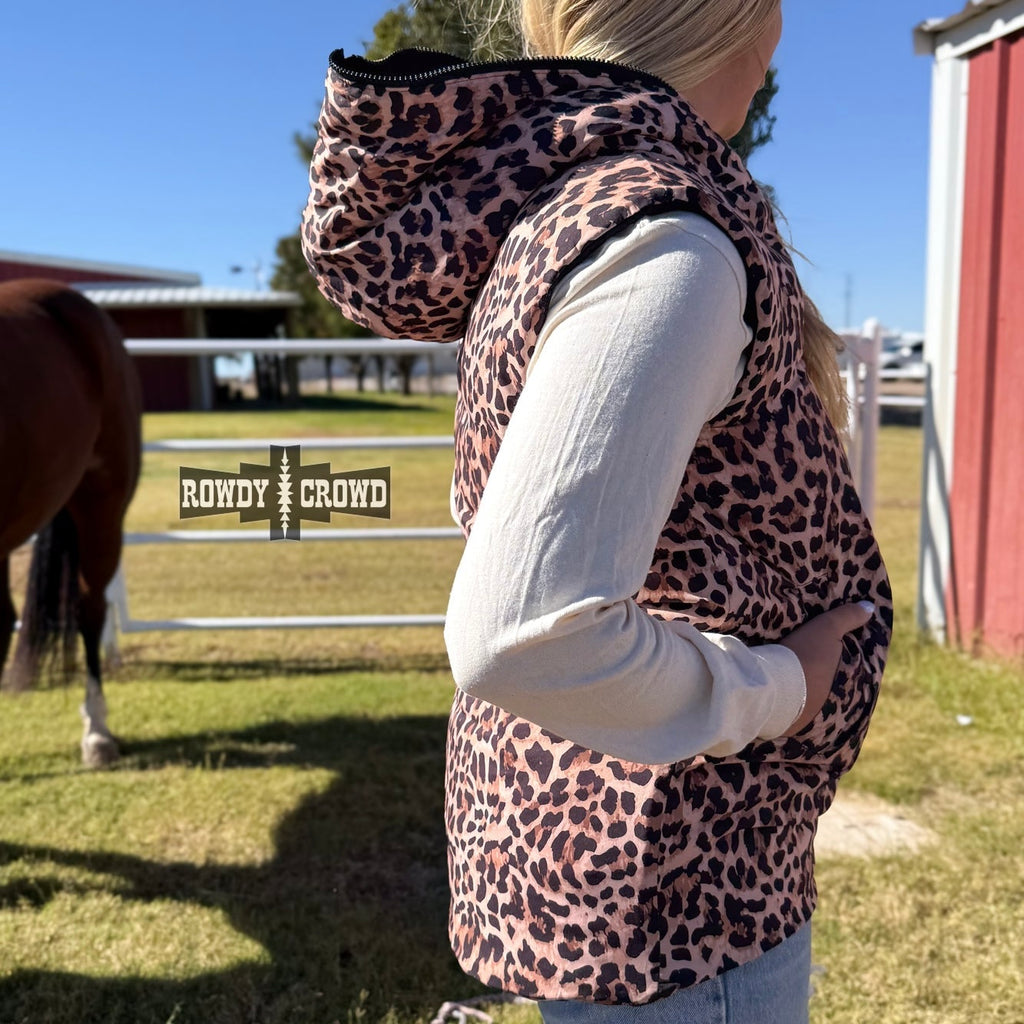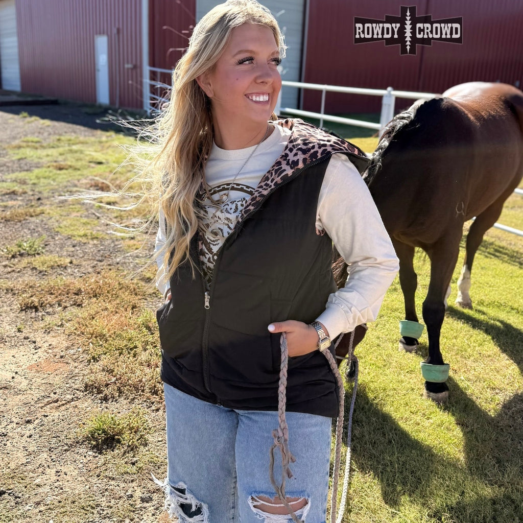 Two looks. One vest. Zero regrets. The Vagabond Reversible Vest gives you the best of both worlds with a sleek black side for everyday wear and a bold leopard print side when you’re feeling a little extra. Lightweight yet cozy, this zip-front vest features functional pockets and an easy fit that layers perfectly over tees, thermals, or hoodies. Solid Side 100% Nylon; Printed Side 100% Polyester.